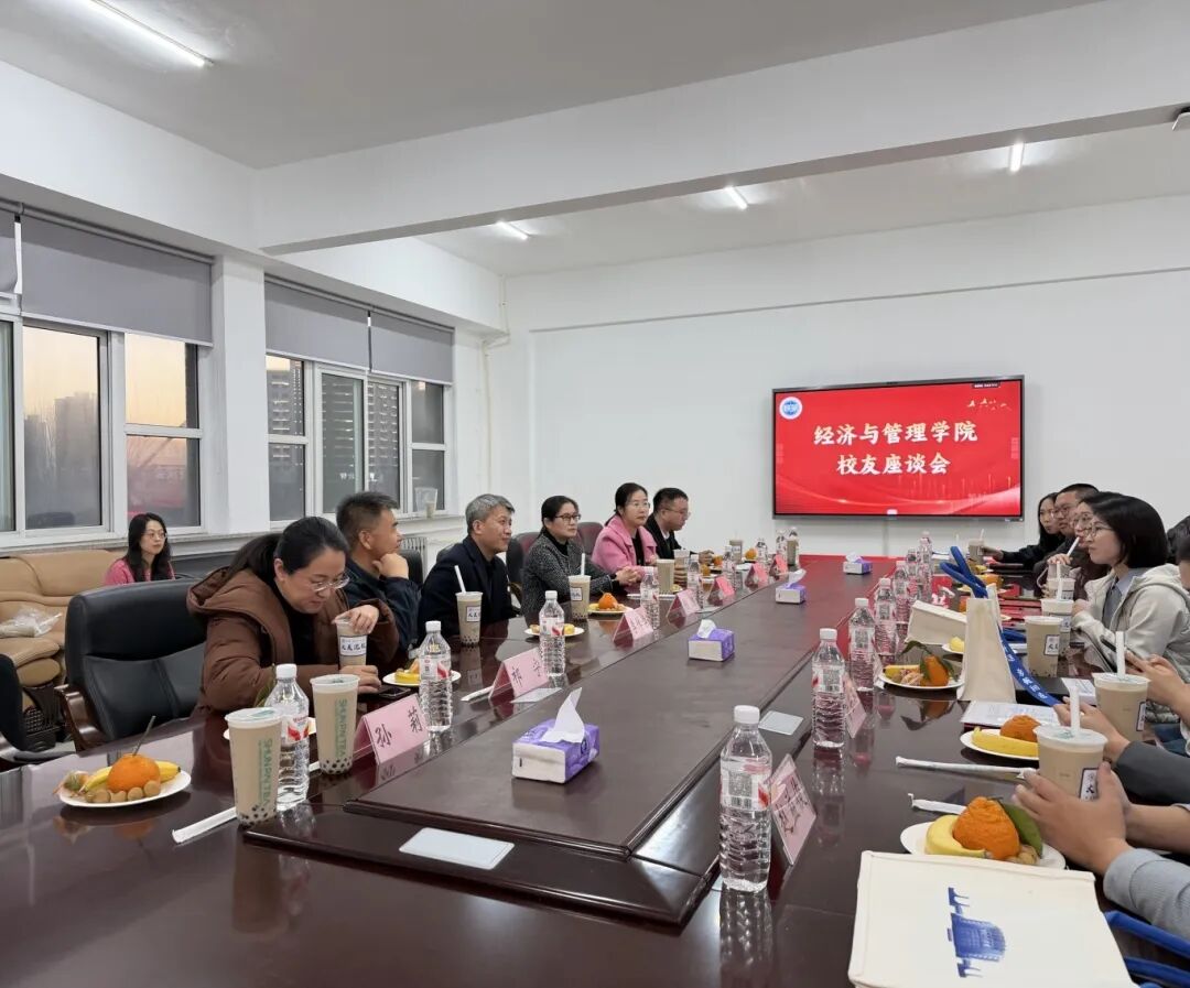 学院校友座谈会于经管楼402会议室举行。来自全国各地的优秀校友代表重返母校,学院领导班子成员及部分教师代表参会,共叙师生情谊,共商发展大计。