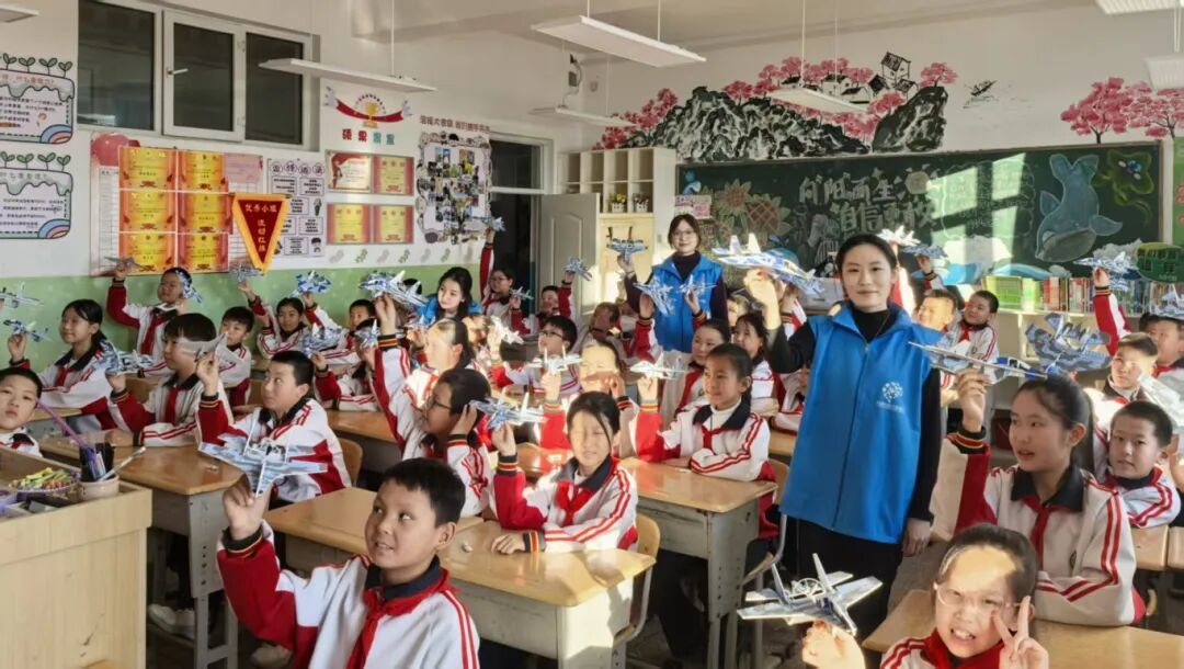 活动紧扣不同学段学生认知特点,定制差异化内容:科普讲座系统梳理航空航天发展脉络,解读我国重大成就与核心技术原理,结合鲜活案例展望专业前景与人才需求,诠释航空航天精神;航模实操课堂通过图文展示、动画演示、趣味问答等形式,讲解基础航空航天知识,分享科学家励志故事,让孩子们在互动中感受科学魅力,在心中播下崇尚科学、勇于探索的种子。